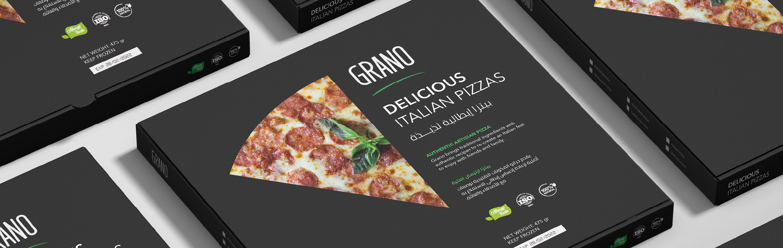 They requested our expertise in packaging design to create their frozen pizzas for retail. Our objective was to ensure the packaging looked appealing to consumers while also communicating the handcrafted nature of Grano’s food.